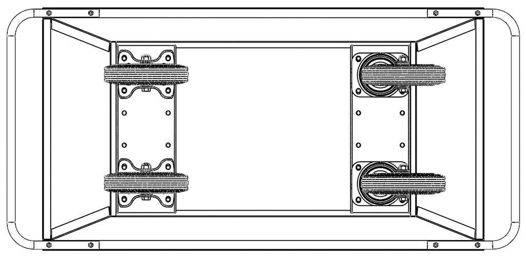 Pulverlackerad i gult, kan monteras med 3 eller 4 hjul. CE-märkta lyftöglor finns som tillval.