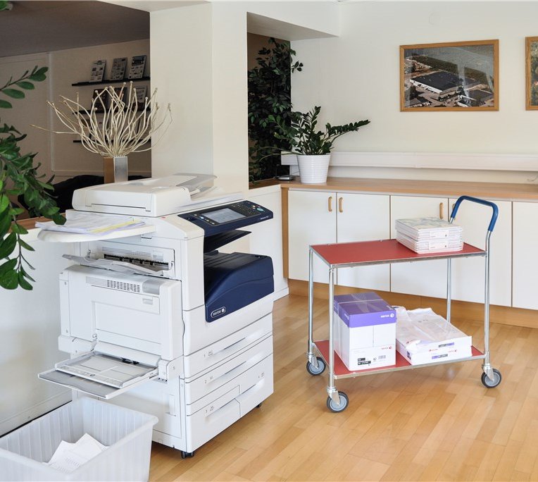 En mångsidig och lättviktig bordsvagn med laminatskiva och plastat handtag – finns i ett flertal färgkombinationer och med eller utan bromsade hjul.