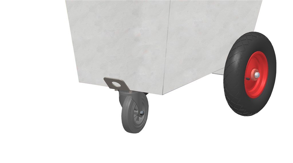 CE-märkt med lyftöglor för säkra kranlyft. Stora 400 mm luftgummihjul och bromsat hjul.
