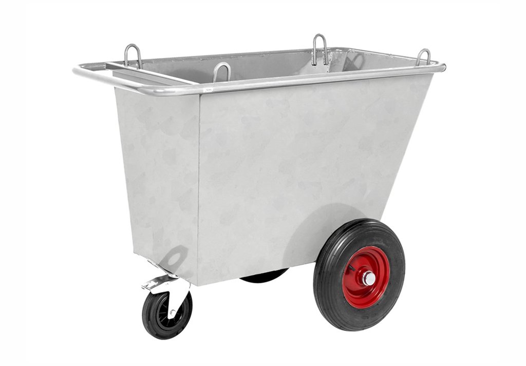 Avfallsvagn med 400 liters kapacitet och varmförzinkad yta för utomhusbruk och industri.