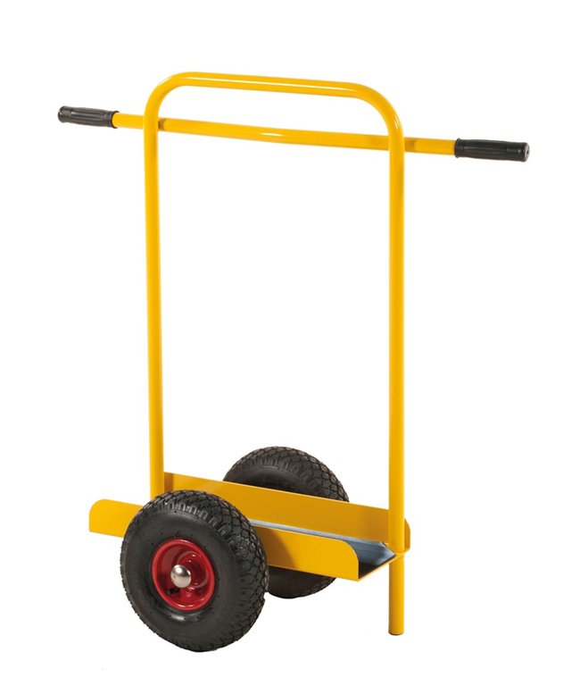 En ergonomisk skivvagn med högt sidomonterat handtag som ger bra kontroll vid transport av tyngre material. Utrustad med gummimatta och luftgummihjul för stabil och jämn körning.