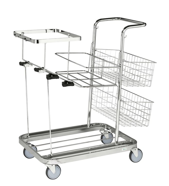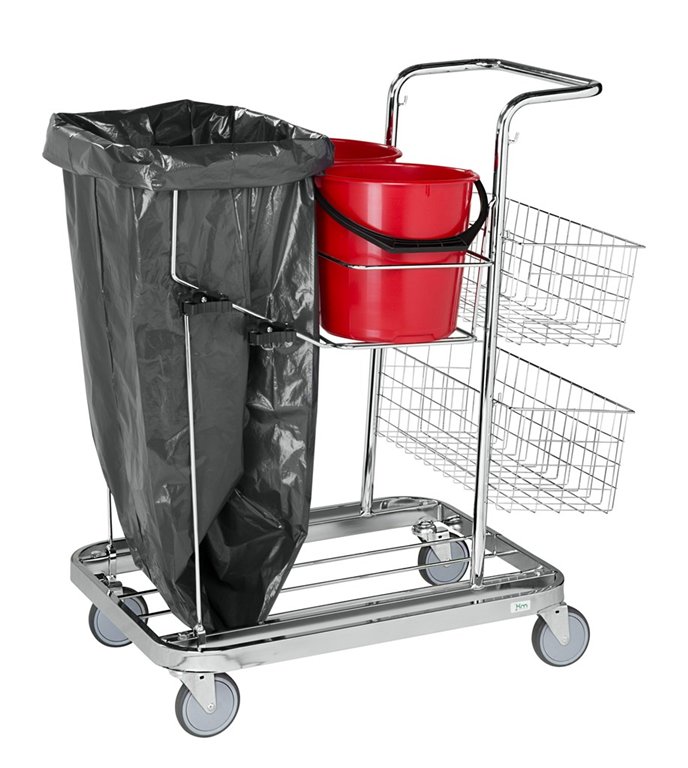 Kompakt städvagn i elförzinkad stål, anpassad för 125-liters säck.