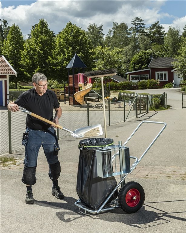 Städkärra i elförzinkad stål för utomhusbruk, anpassad för 125-liters säck.